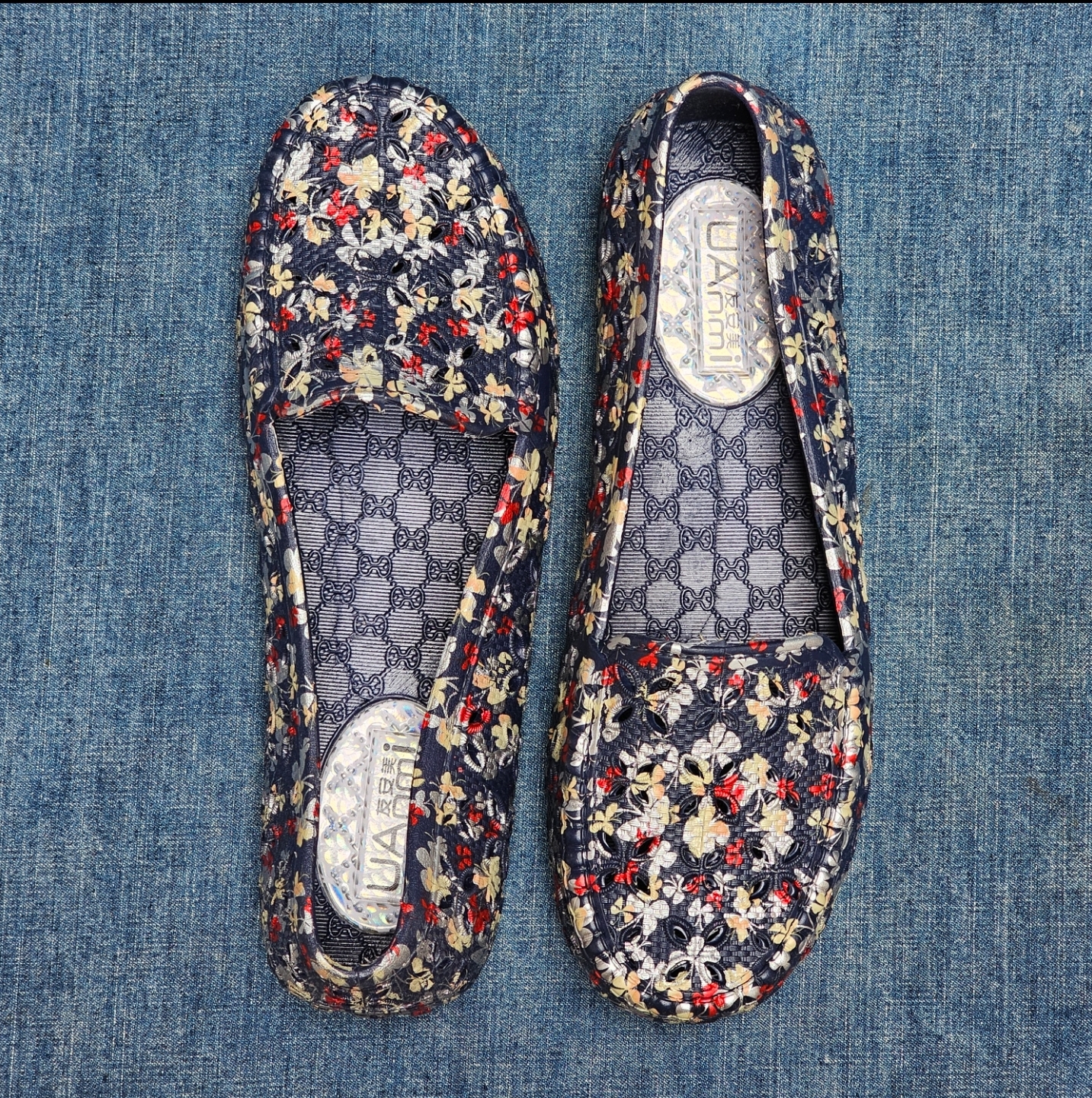 友安美Uanmi印花低幫洞洞鞋
