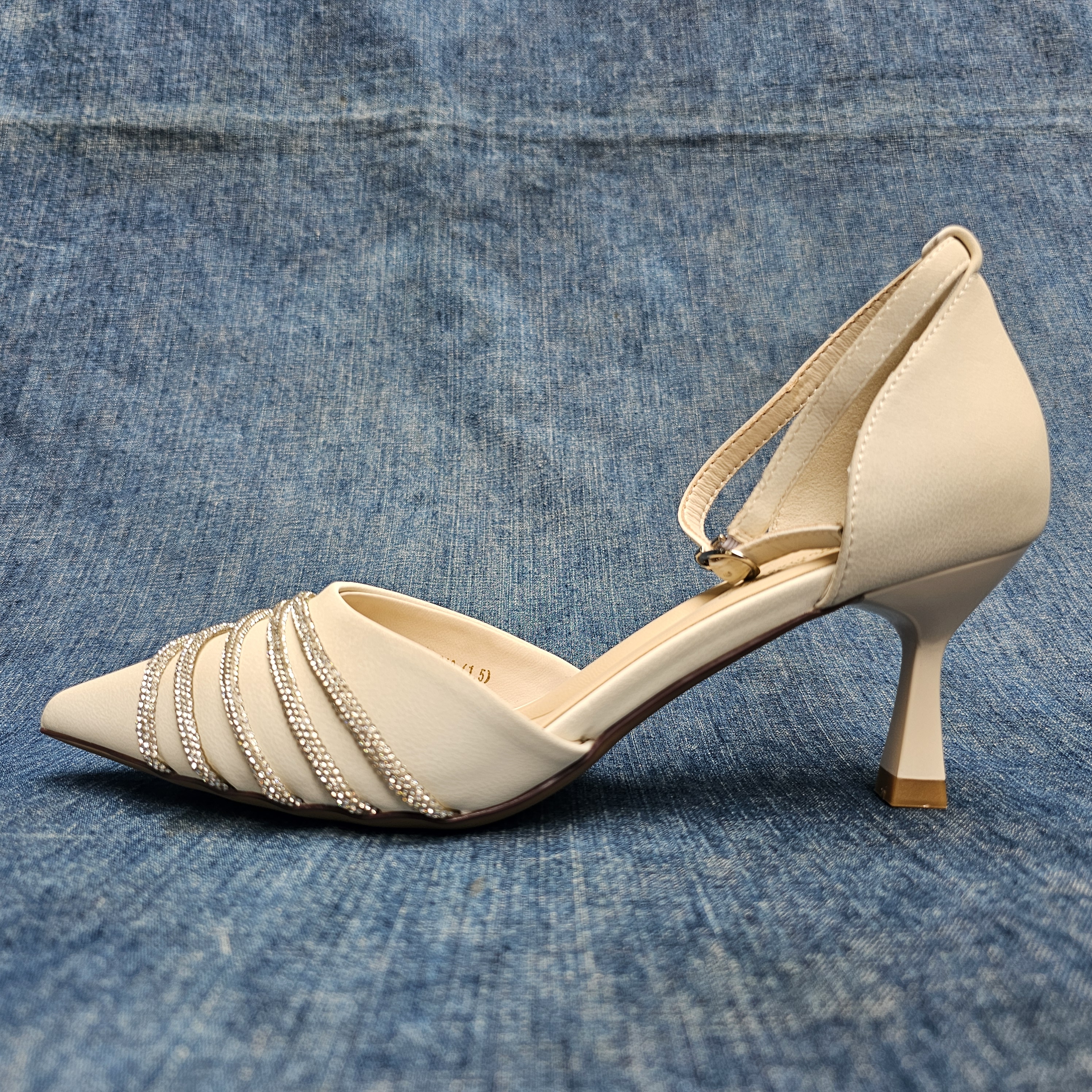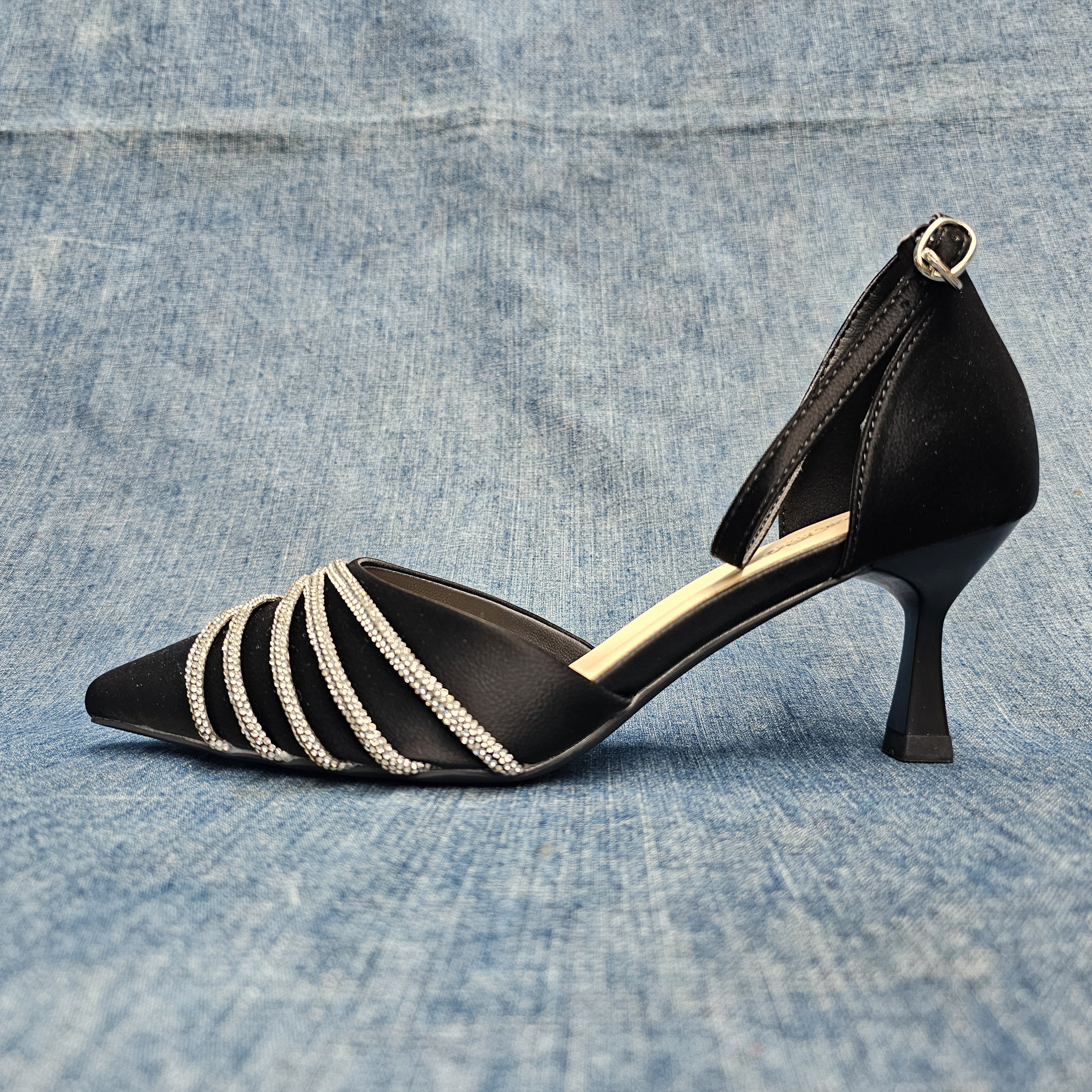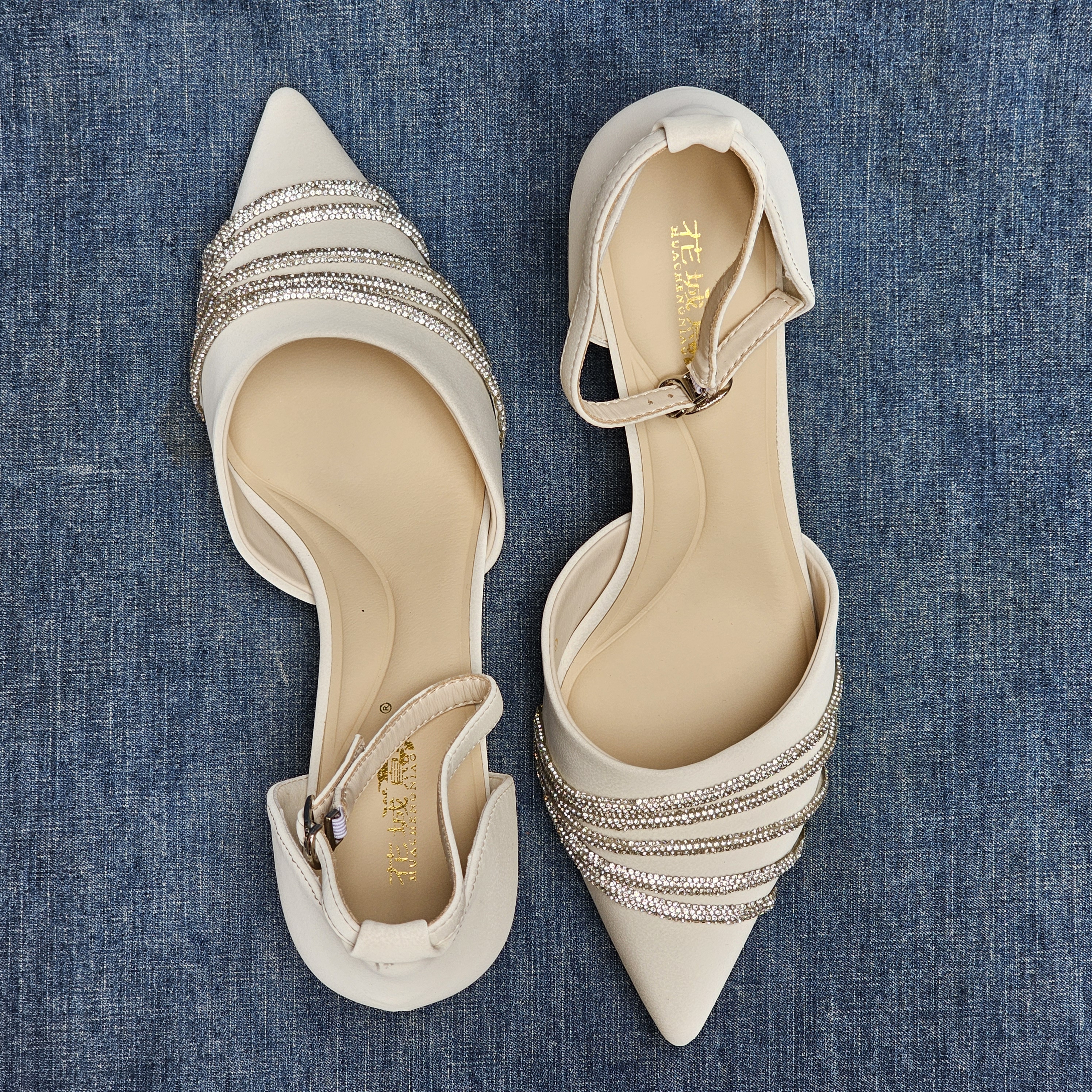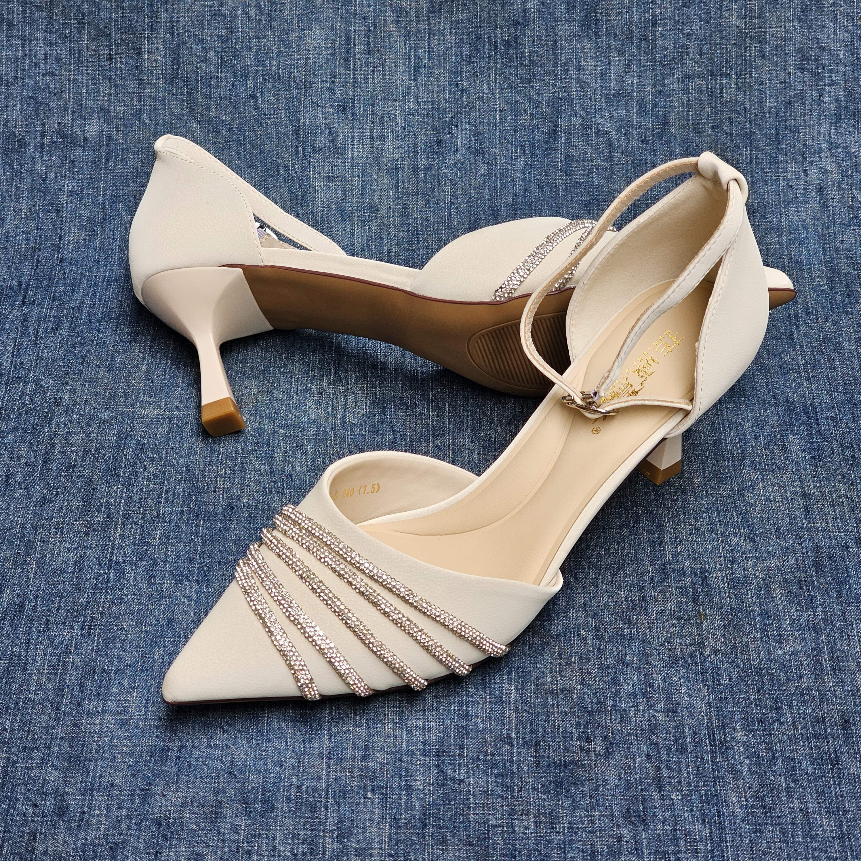 時尚法式包頭水鑽7cm高跟涼鞋