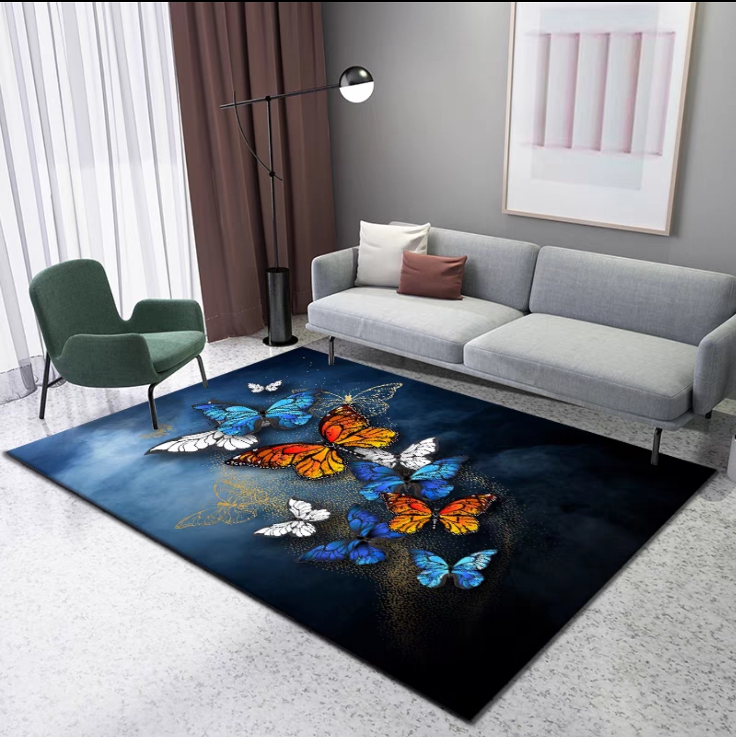 簡約後現代輕奢混紡大地毯-花羽蝶