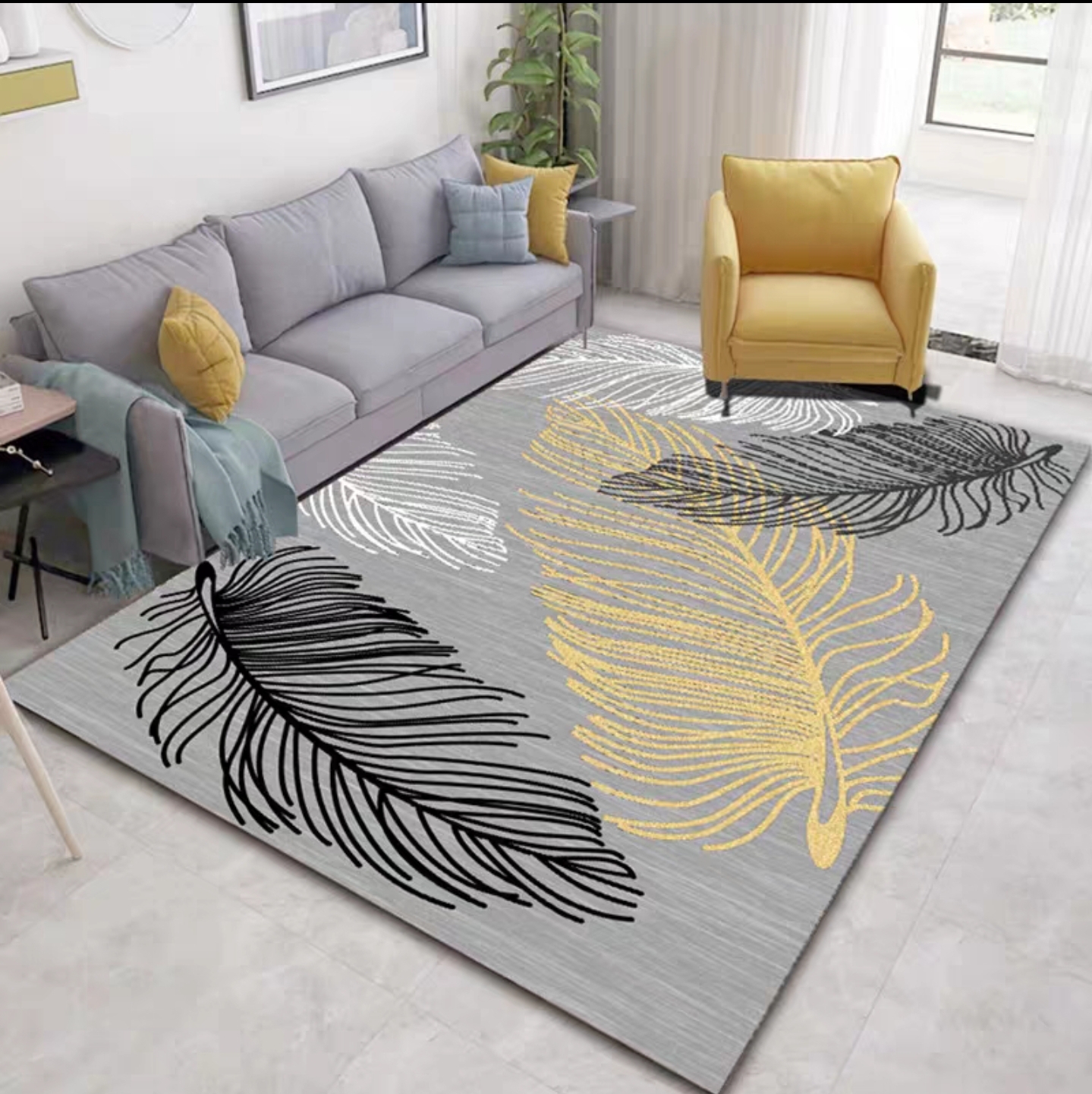 Nordic simple geometric blended crystal velvet carpet-Nordic Feather 3D